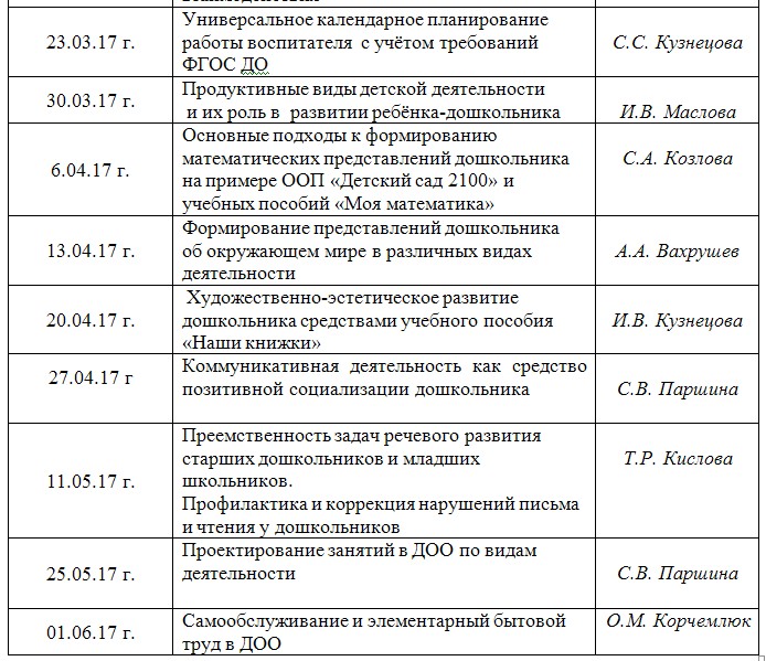 Учебно-методический центр "Школа 2100" проводит в 2016/2017 учебном году серию вебинаров для руководителей ОО и ДОО, дошкольных педагогов и учителей начальной и основной школы. Ведущие вебинаров - авторы учебников ООП и учебных пособий "Детский сад 2100", методисты Образовательной системы "Школа 2100".